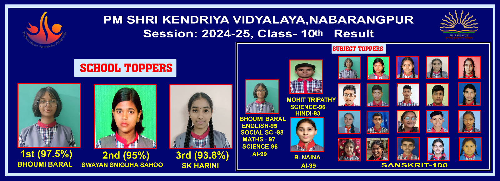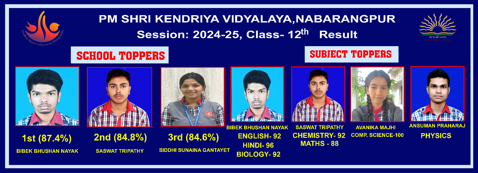 प्रिय माता-पिता,पीएम श्री केन्द्रीय विद्यालय नबरंगपुर, के भौतिक और मानव संसाधन हमारे छात्रों के सर्वांगीण विकास के लिए पूरी तरह से समर्पित हैं, चाहे वह अध्ययन, खेल या सीसीए के क्षेत्र में हो। हम अपने छात्रों को "केवियन" कहते हैं, जिनके बारे में माना जाता है कि वे जीवन की चुनौतियों का सामना करने में सक्षम हैं। इस विद्यालय के शिक्षक हमेशा हमारे छात्रों को वैचारिक रूप से मजबूत बनाने और व्यावहारिक स्थितियों में सीखने की समझ और अनुप्रयोग को सुनिश्चित करने के लिए शिक्षा प्रदान करते हैं। हमारा उद्देश्य अपने विद्यार्थियों में वे सभी विशेषताएँ विकसित करना है जो एक जिम्मेदार भारतीय नागरिक में होनी चाहिए। (श्री. हितेश कुमार वर्मा)